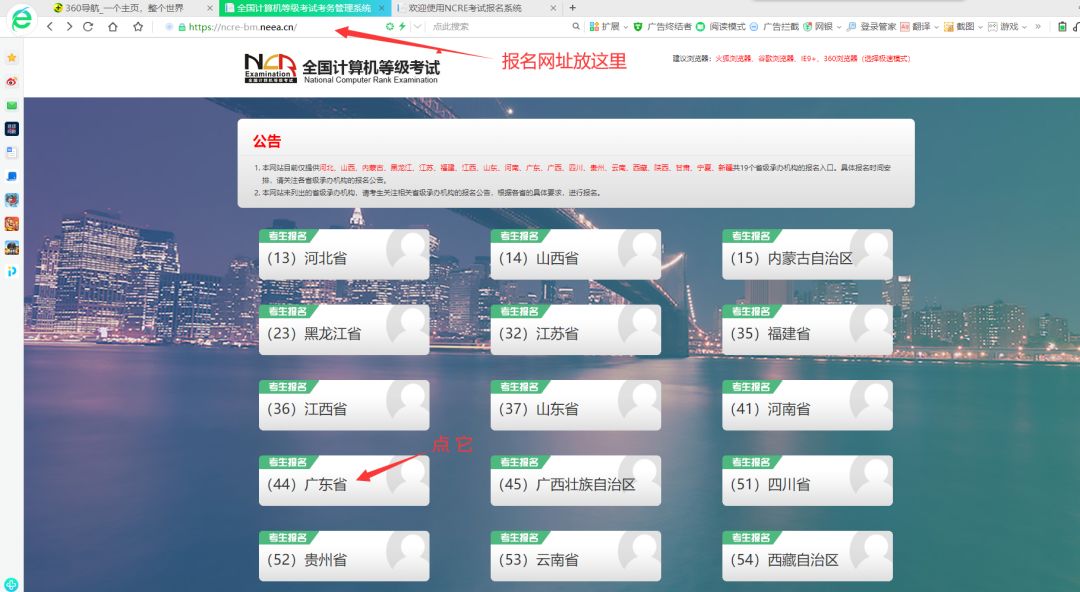 下面流程适合全国各个省份考区操作,下面以【广东省】为例加以说明。
